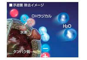 浮遊カビ菌表面の細胞膜のタンパク質を切断して分解・除去し、除菌します。